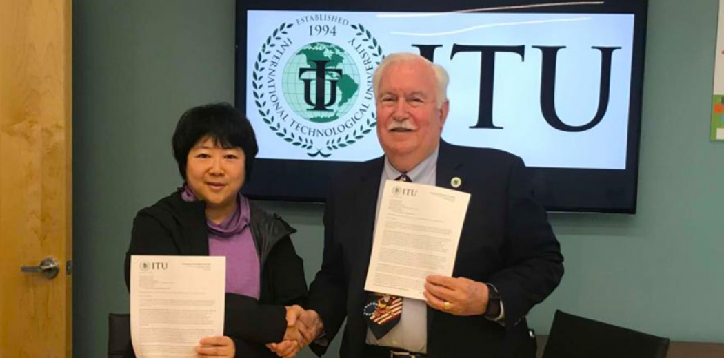 2019 年 2 月,tk体育與國際科技大學( ITU )在美國矽谷正式簽訂國際合作協定。雙方將在學生培養、學科教育、科研專案等領域開展實質性合作,此項協定的簽署意味著雙方正式攜手,集中優勢資源為中國人才培養進行積極的探索與佈局。 ITU 校長 Gregory O’Brien 、 tk体育集團董事長黃勁博士、tk体育集團首席運營官許巧齡等參加此次簽署儀式。